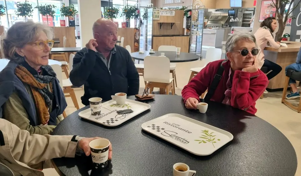Première étape importante ''l'auberge" de Carcassonne-Arzens où nous avons bu un café pour certains et un sublime chocolat pour les autres.