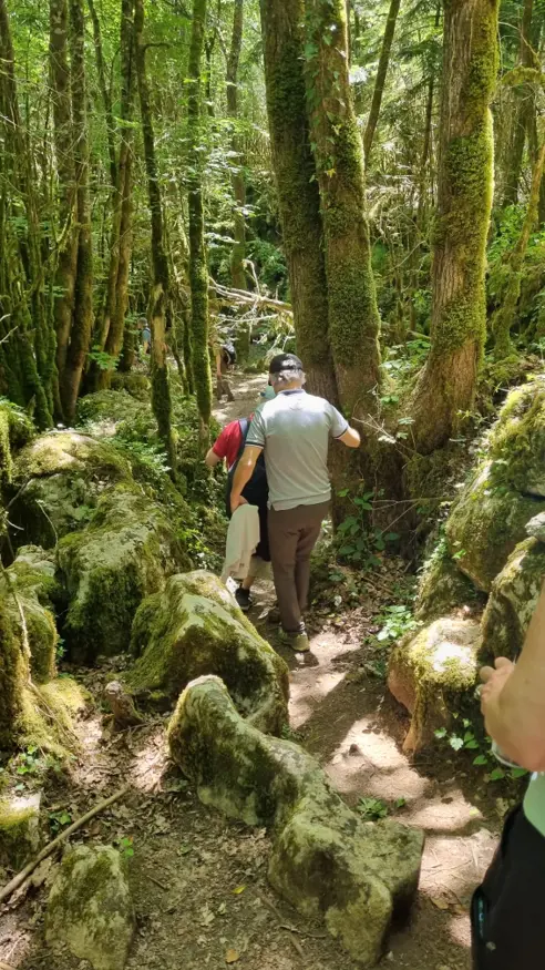 Pour une digestion harmonieuse, nous voila partis à l'aventure dans le labyrinthe vert de Nébias. Ça monte, ça descend, ça tourne. On serre les fesses et nos estomacs bien garnis pour emprunter des passages étroits, mais surtout on ouvre grand ses yeux tellement c'est beau.