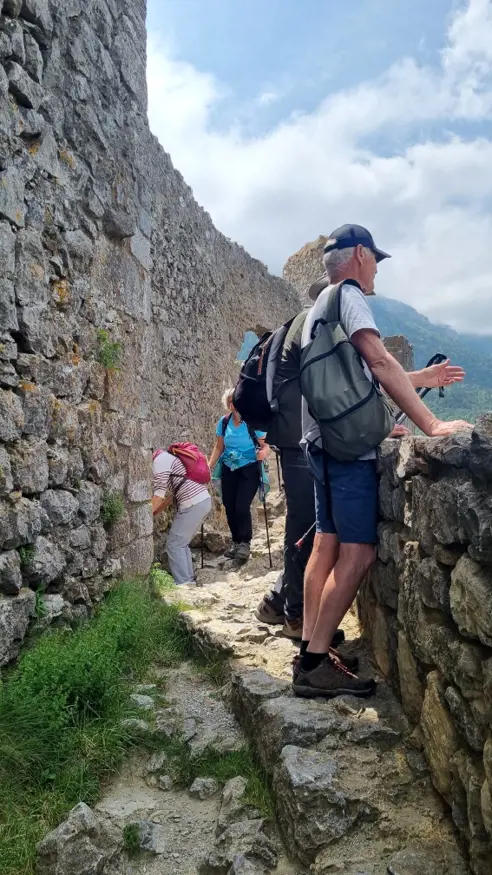 Les gorges de Galamus c’était vertigineux. On mesure la force de la nature qui les a façonnées. Avec l'Hermitage accroché à la roche, le génie de l’être humain. L’accès à l'Hermitage par le petit sentier botanique nous a fait une mise en jambe pour !'ascension vers le château de Puilaurens prévue l’après-midi.