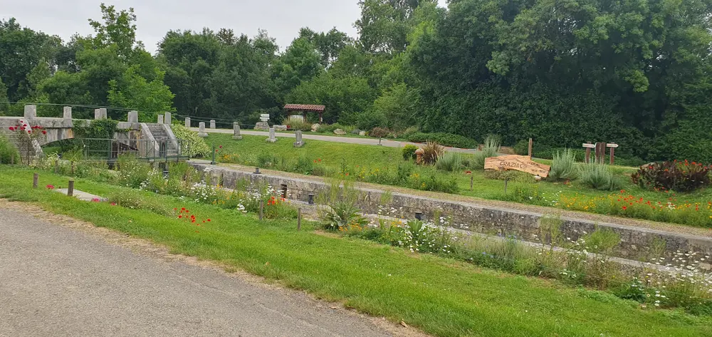 Retour à Castelnau en passant par la double écluse de Graziac, sur la Baïse, dans son écrin de verdure bucolique.