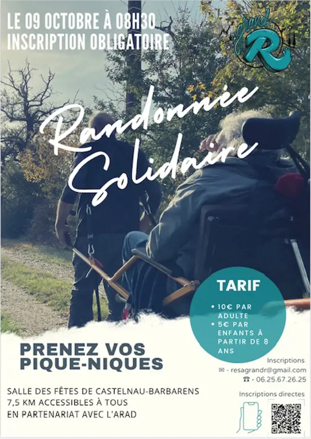 Au plaisir de vous retrouver pour une virée au Grand R! L'intégralité des fonds récoltés sera reversée pour la réalisation de séjours sports d'hiver! https://associationgrandr.fr/sejour-sport-dhiver/ Nous sommes preneurs de volontaires pour piloter les joelettes! Les inscriptions sont ouvertes et peuvent se faire soit par mail: resagrandr@gmail.com soit en ligne: https://www.helloasso.com/associations/grand-r/evenements/randonnee-solidaire N'oubliez pas de prendre avec vous un petit pique- nique que vous pourrez déguster en compagnie de gens bien agréables à la salle des fêtes! Nous r... Lire la suite