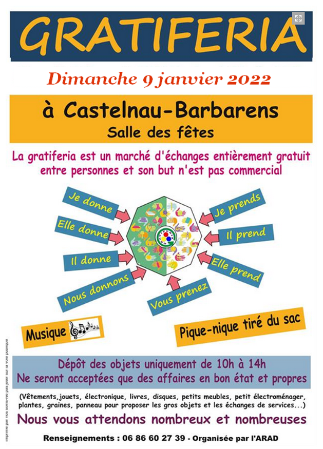Le dimanche 19 décembre l'ARAD invite ses adhérents à une balade sur la commune de Lasseube Propre. Vous remarquerez que nous ne trouvons pas de "Lasseube Sale" à proximité... et pour cause! Le "Propre" dont il est question vient du latin "propra" qui signifie "noble". "Lasseube" étant issu du latin "seuva" qui signifie "forêt", nous vous invitons donc à une rando dans une noble forêt ! Balade facile de 6,5 km ou 3,5 km (pour les moins marchants) sur de bons chemins. Rendez-vous à 9h 00 sur le parking de la salle des fêtes pour un départ en covoiturage. Bonnes chaussures et tenues adapté... Lire la suite