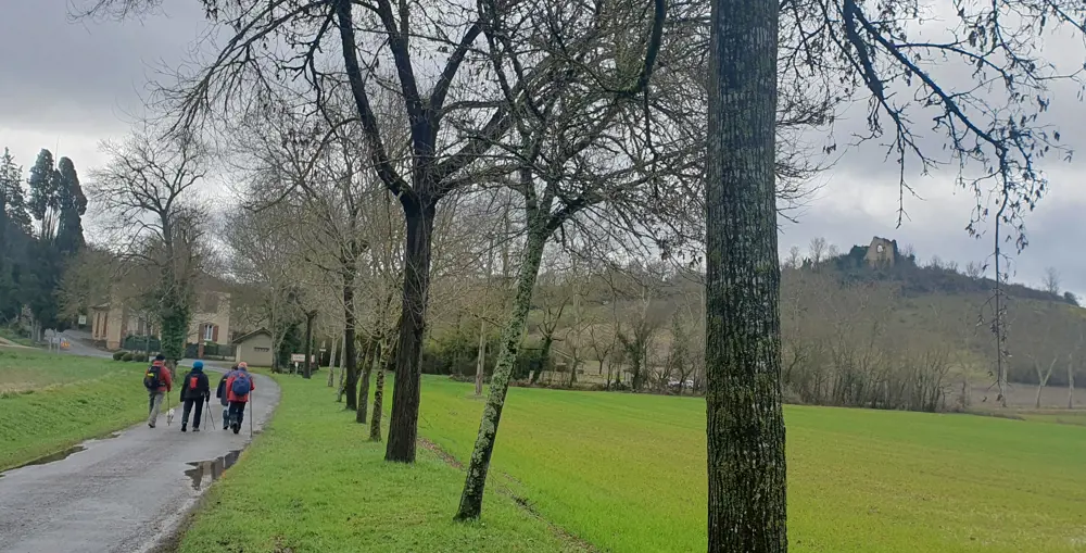 Direction Lamaguère où, sous les ruines du château érigé au sommet du coteau qui domine la vallée de l'Arrats, nous empruntons un chemin qui nous amène entre les « coteaux de la Lauze » et les « coteaux de l'Arrats ».