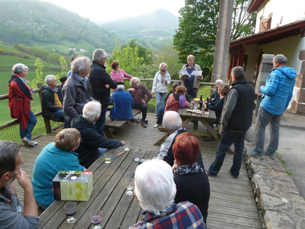 Après nettoyage des lieux, direction Saint Jean Pied de Port pour les uns et balade dans l'Arradoy et ses vignes AOC Irouléguy au départ du village d'Ispoure. Une ascension douce, pour un point de vue imprenable sur la plaine de Cize et les Pyrénées basques.